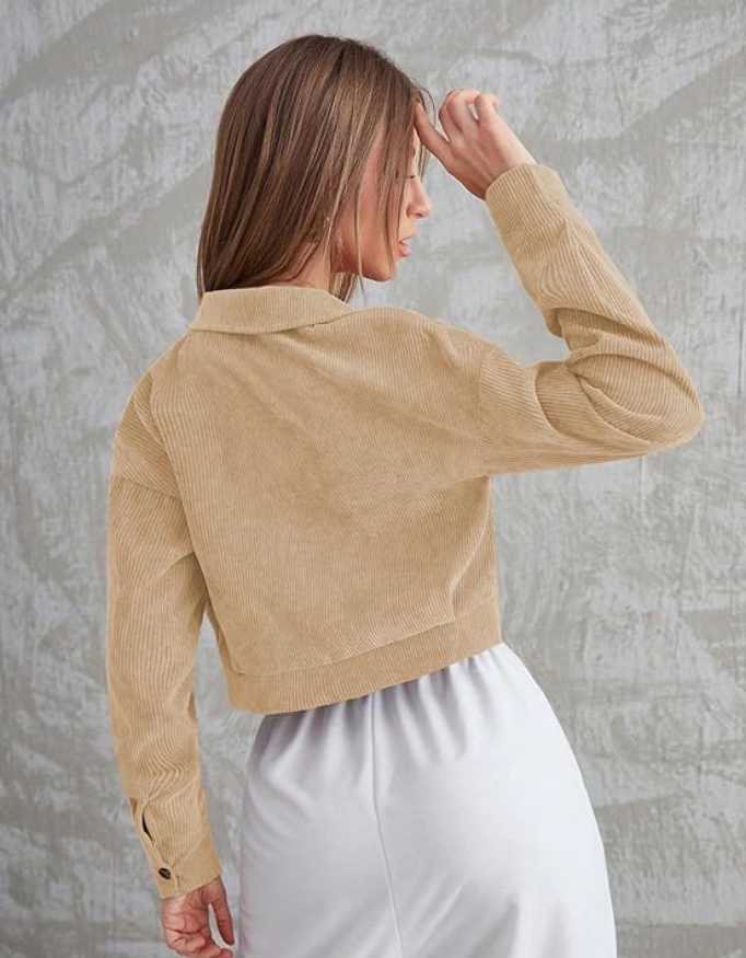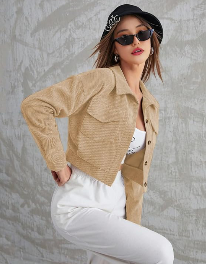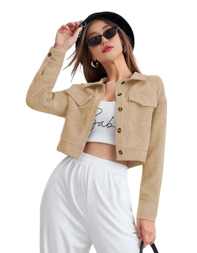- Trendy Cotton Blend Fabric – Made from premium soft Ribbed Texture material, this women’s cropped jacket is lightweight, breathable, and stylish for all-day comfort.