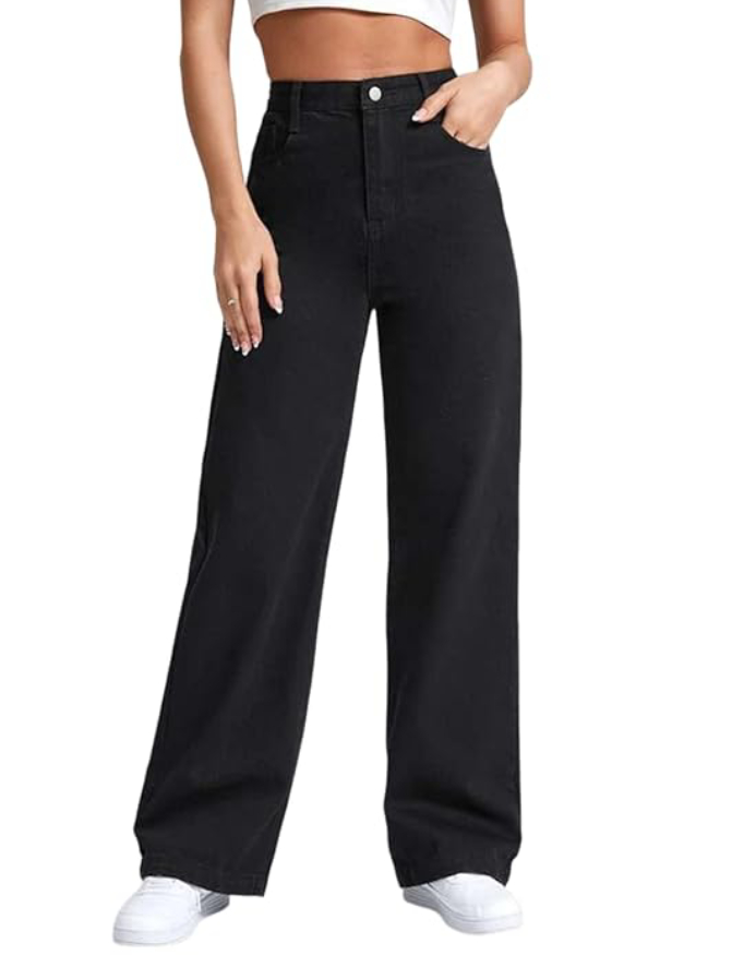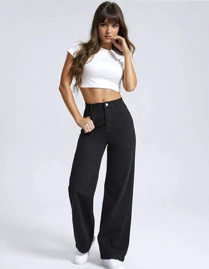 Women’s High Waist Wide Leg Flared Jeans with Trendy Fit and Clean Look